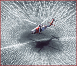 The skill lies in finding an into wind position by looking for all available cues at the bottom of an approach over the sea, including the position of the downwash, judging whether the aircraft has come to the hover in a slightly left or right wing low position, and the resulting need to introduce left or right pedal to correct until it settles comfortably. Once established in the hover slack wind conditions present the twin evils of higher hover torque and a few tonnes of rotor wash hitting the sea directly below the aircraft, which could easily drown a person in the water, and complicates the task of hoisting to small and even medium sized vessels.