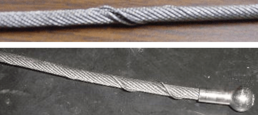 Poor operating practices that can twist a cable apart or seriously weaken it include stresses such as the rotation of a load upsetting the torsional balance of the wire rope, thus creating a birdcage, or the sudden release of a load (such as can result from a rescuer hitting the ground quickly, or using a quick release mechanism while in the air) which results in dynamic unloading and can cause a rebounding in in the internal core of the wire rope.