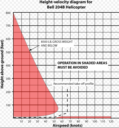 Figure 2: An illustrative Height-Velocity Diagram for the Bell 204 Helicopter