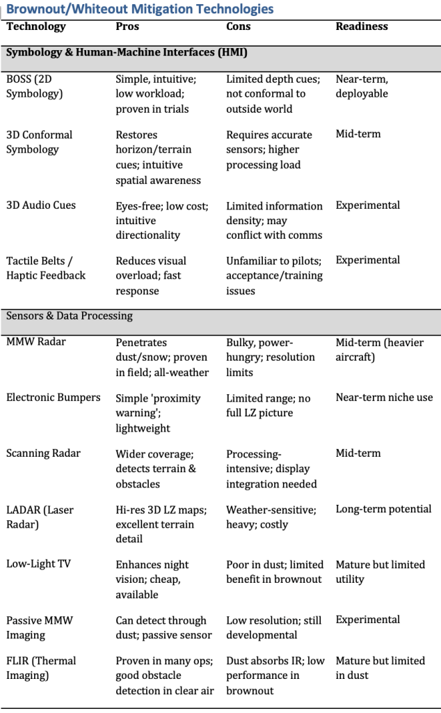 Table 2. Brownout/Whiteout Mitigation Technologies